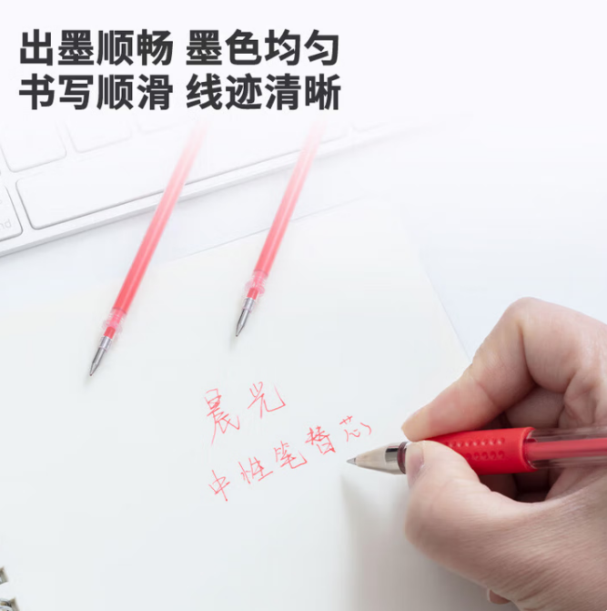 晨光(M&G)0.5mm红色中性笔子弹头笔芯签字笔替芯拔盖笔适用Q7/33109适用MG6102 单支装