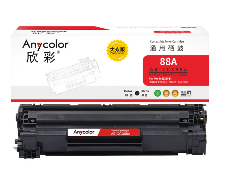 欣彩(Anycolor) AR-CC388A 大众版 打印量约1500页 硒鼓 (计价单位:支) 黑色