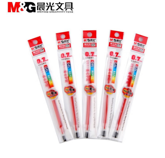 晨光(M&G)0.7mm红色中性笔芯优质办公子弹头签字笔替芯事务专用水笔MG6128 单支装